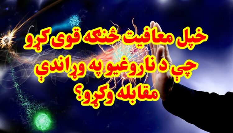 که تاسو خپل صحت ښه کول غواړئ نو لومړی به د معافیت سیسټم قوي کولو هڅه کوئ ځکه چې ستاسو معافیت کمزوری وي نو تاسو یو صحتمند کس نه یاست. د معافیت سیسټم قوي کولو لپاره تاسو د داسې خواړو کارول زیات کړئ چې په هغو کې د معافیت قوي کولو وړتیا وي. نه داسې چې تاسو د دې لپاره ډېری پیسې خرڅې کړئ بلکې په کور کې په ورځني خواړو تاسو کولای شئ د خپل بدن معافیت سیسټم قوي کړئ. پوهېږئ ډېری خلک نن سبا د معافیت سیسټم زیاتوالي لپاره پر ډاکترانو ډېری پیسې خرڅوي. ځکه چې په نړۍ کې د کرونا ویروس د خپریدو له وجې که د هرچا د معافیت سیسټم کمزوری وي نو هغه د کرونا ویروس په وړاندې تر ډېره مقابله نشې کولای.