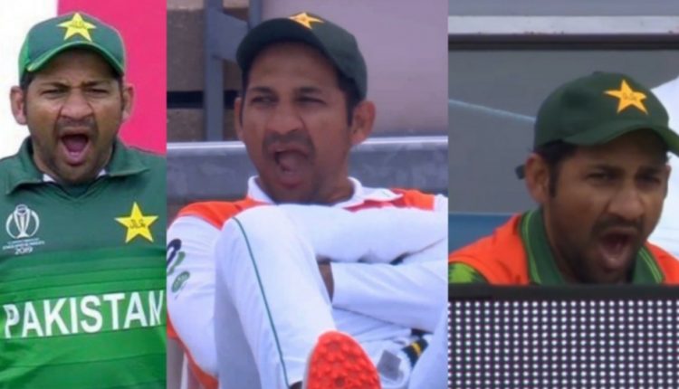 کرکبال وېبپاڼه- د پاکستان کرکټ ملي لوبډلې کپتان سرفراز احمد د انګلستان او پاکستان کرکټ ملي لوبډلو ترمنځ په دوهمه شل اوریزه لوبه کې یو ځل بیا د کمرو تر رادر لاندې راغی چې خپله خوله یې وازه نیولي وي او ارږمی باسي.
