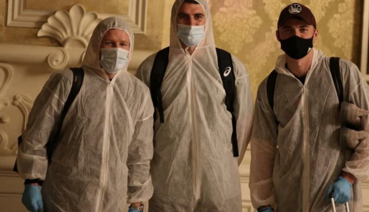 ورنر او نور لوبغاړي لیدل کیږي،چې د کرونا څخه د ځان ژغورلو په موخه یې ځانګړي لباس اغوستی دی.