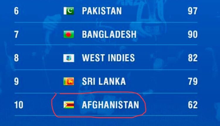خبریال وېبپاڼه- د کرکټ نړيوالي شورا يا اې سې سې لخوا د يو ورځينو لوبو په نړيواله تازه درجه بندۍ کې د (ئې ايس پې اين کريک اېنفو) ټولنيزي شبکې د افغانستان نوم سره د افغانستان ملي بيرغ پر ځای د زمبابوي بيرغ لګولی دی.