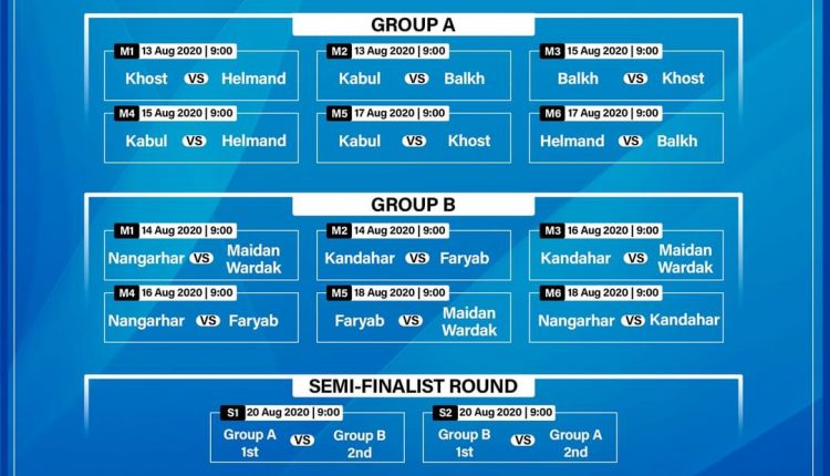 ټولې اته لوبډلې په دوو ګروپونو ویشل شوي،چې په الف ګروپ کې خوست،کابل،بلخ او هلمند لوبډلې شاملې دي.